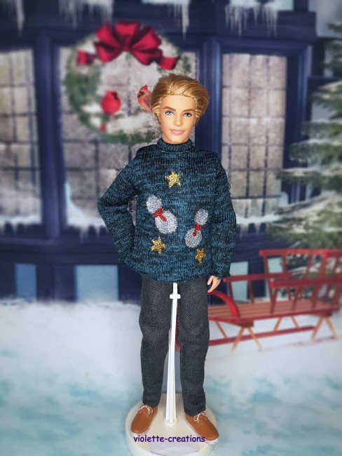 đ Pull de Noël en coton pour poupée Ken – Ambiance festive & douceur d’hiver