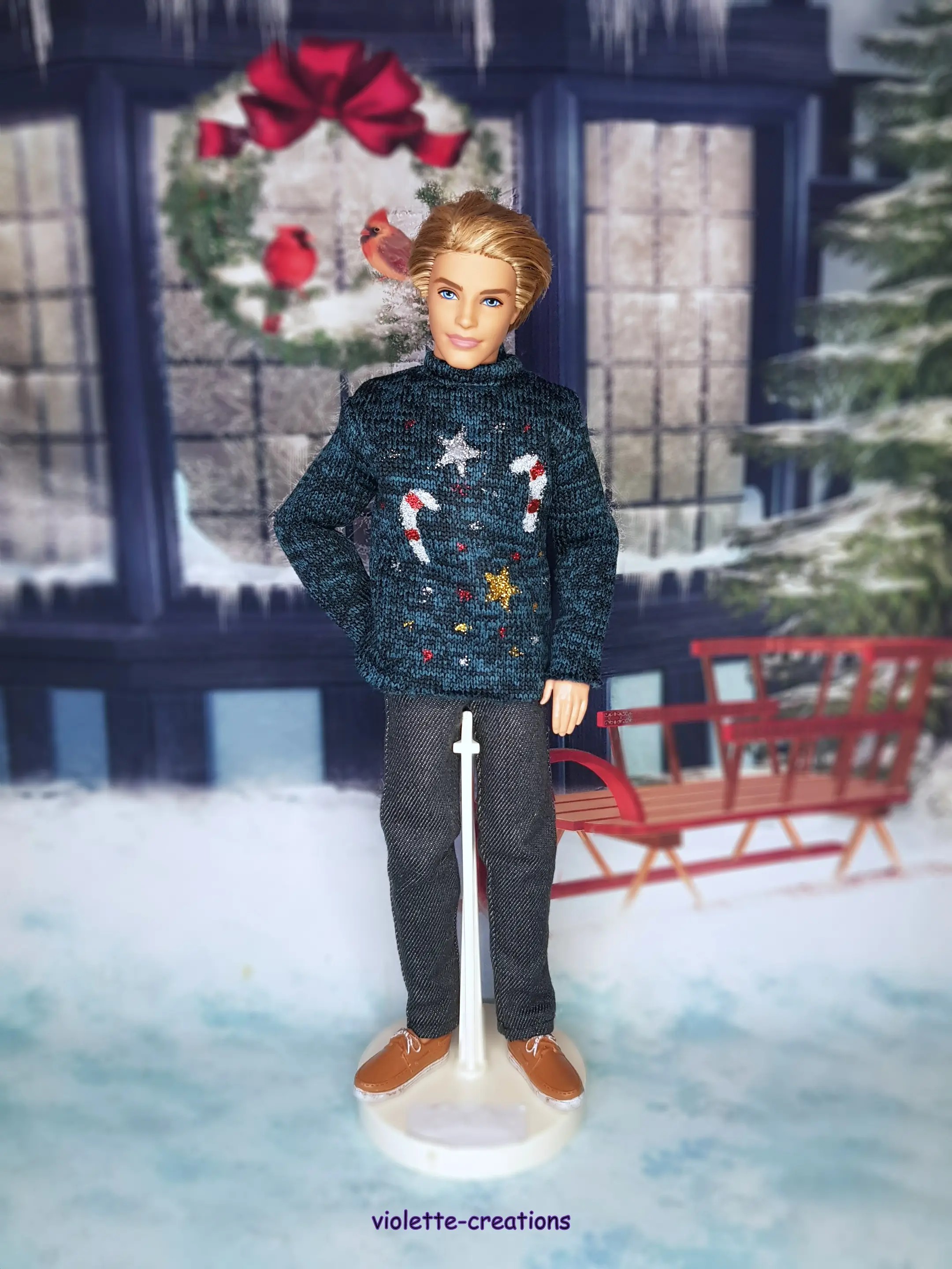 Confortable, facile à enfiler et plein de charme, ce pull est idéal pour vos mises en scène de Noël, vos vitrines miniatures ou pour enrichir la collection de vêtements d’hiver de votre poupée Ken đ