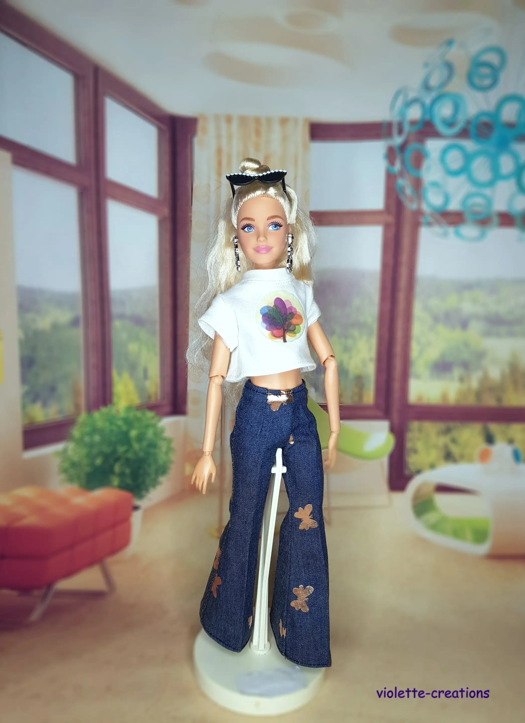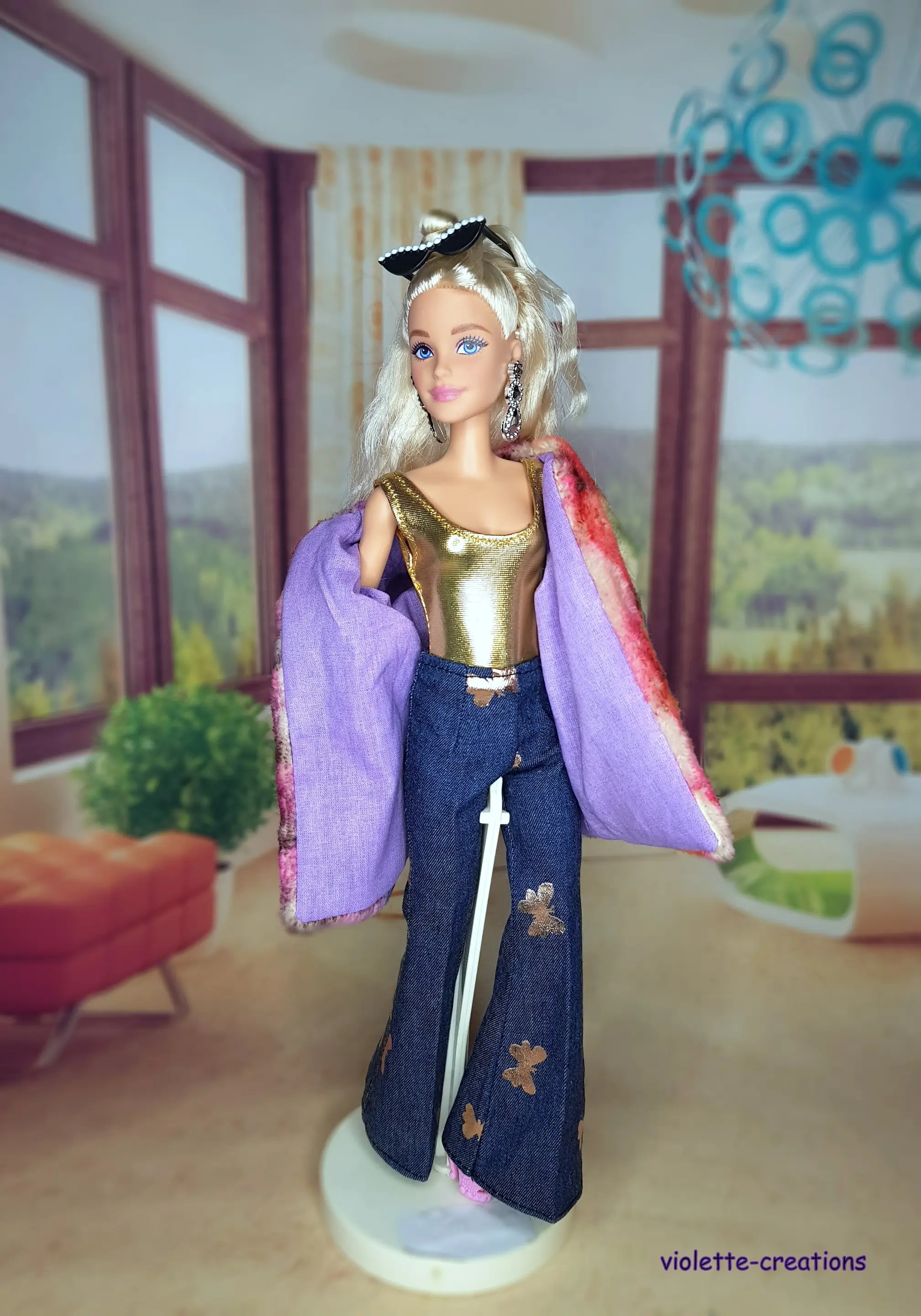Offrez à votre poupée mannequin 29 cm type Barbie une tenue complète au style rétro chic, parfaite pour créer des looks uniques et pleins de caractère.