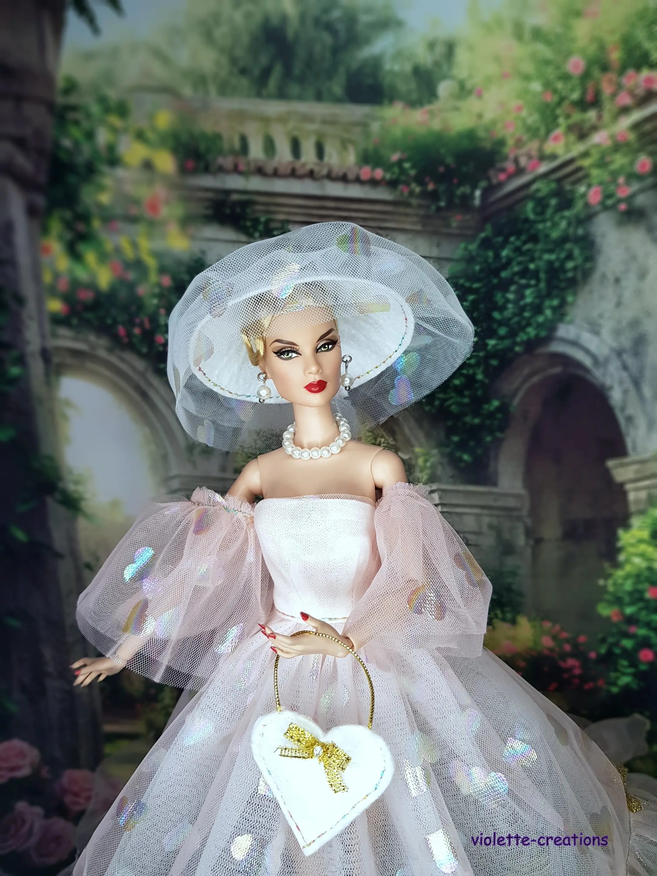 đź‘‘ Robe Princesse en Tulle à Cœurs Brillants pour Poupée Type Barbie – Tenue Élégante avec Chapeau, Sac et Bijoux