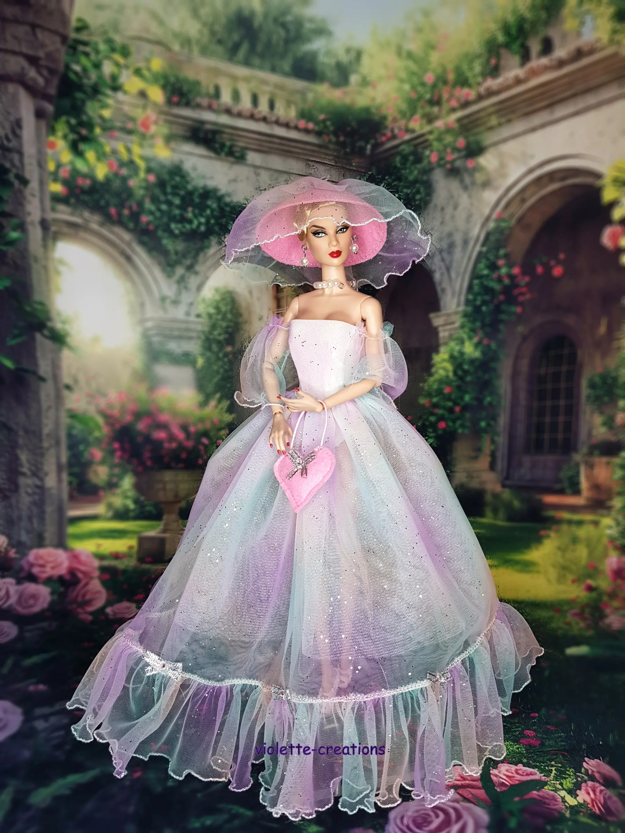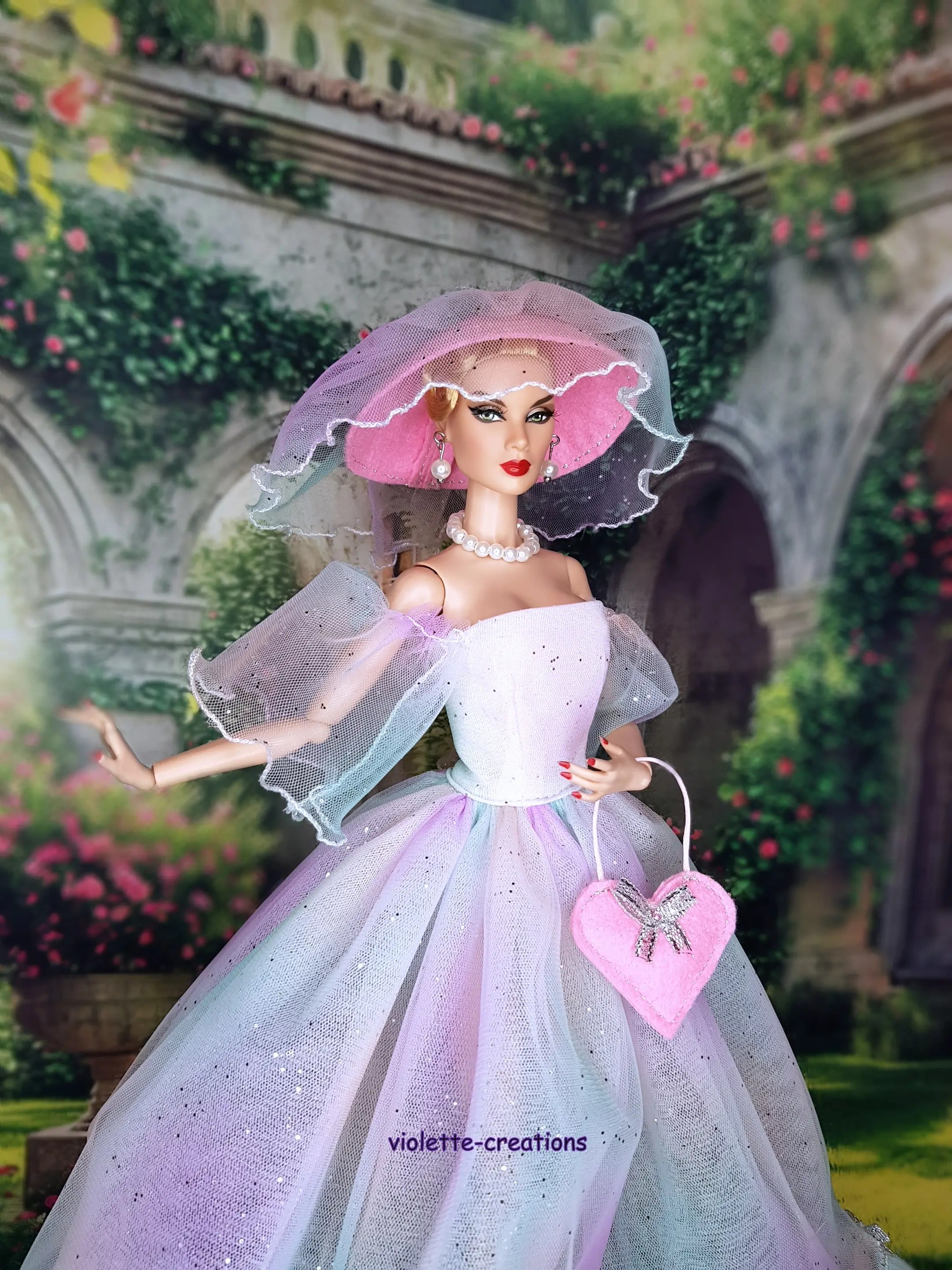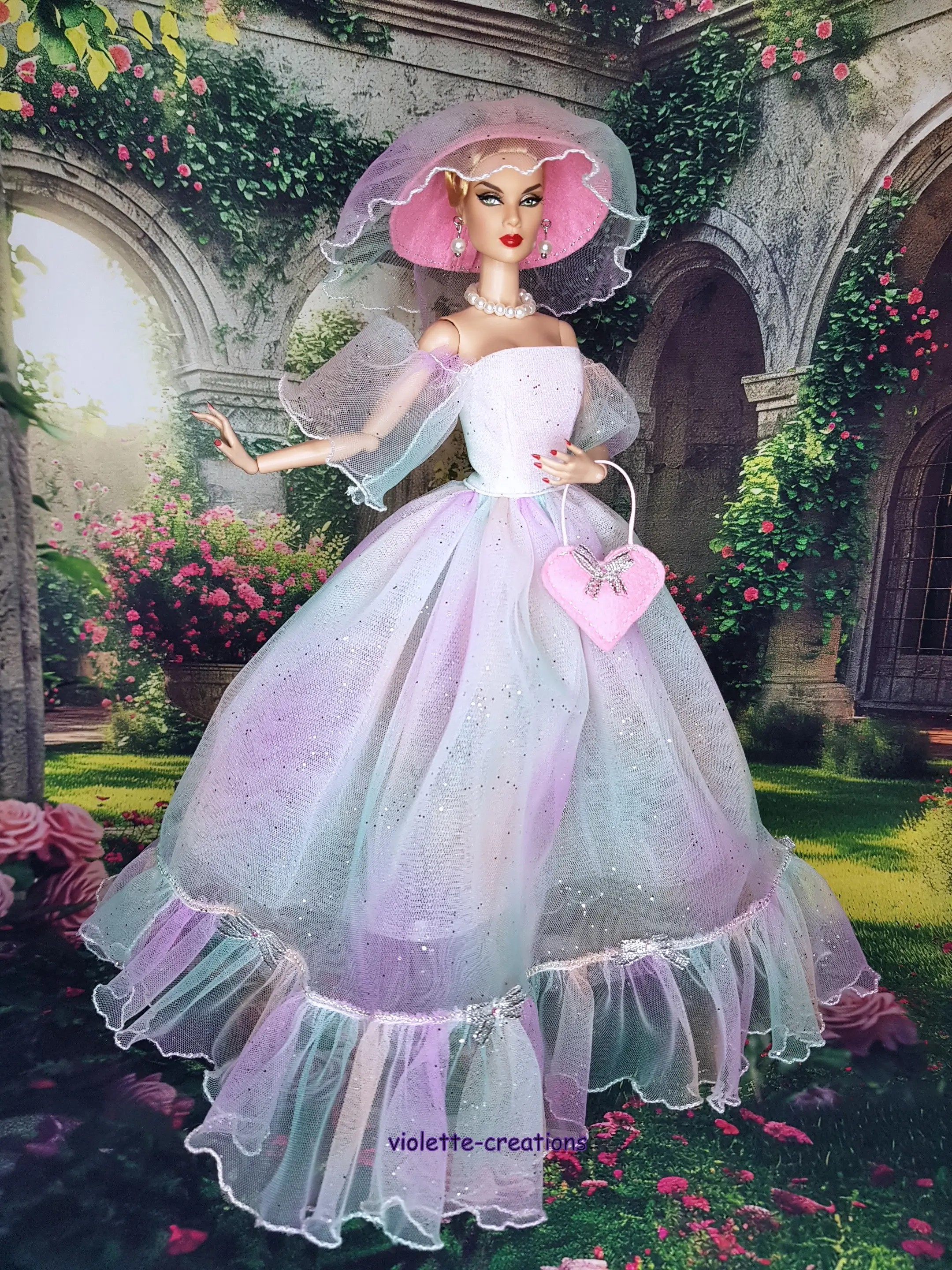 Apportez une touche de magie et de douceur à votre poupée type Barbie (29 cm) avec cette magnifique robe de princesse en tulle léger multicolore, aux reflets délicats et féeriques.