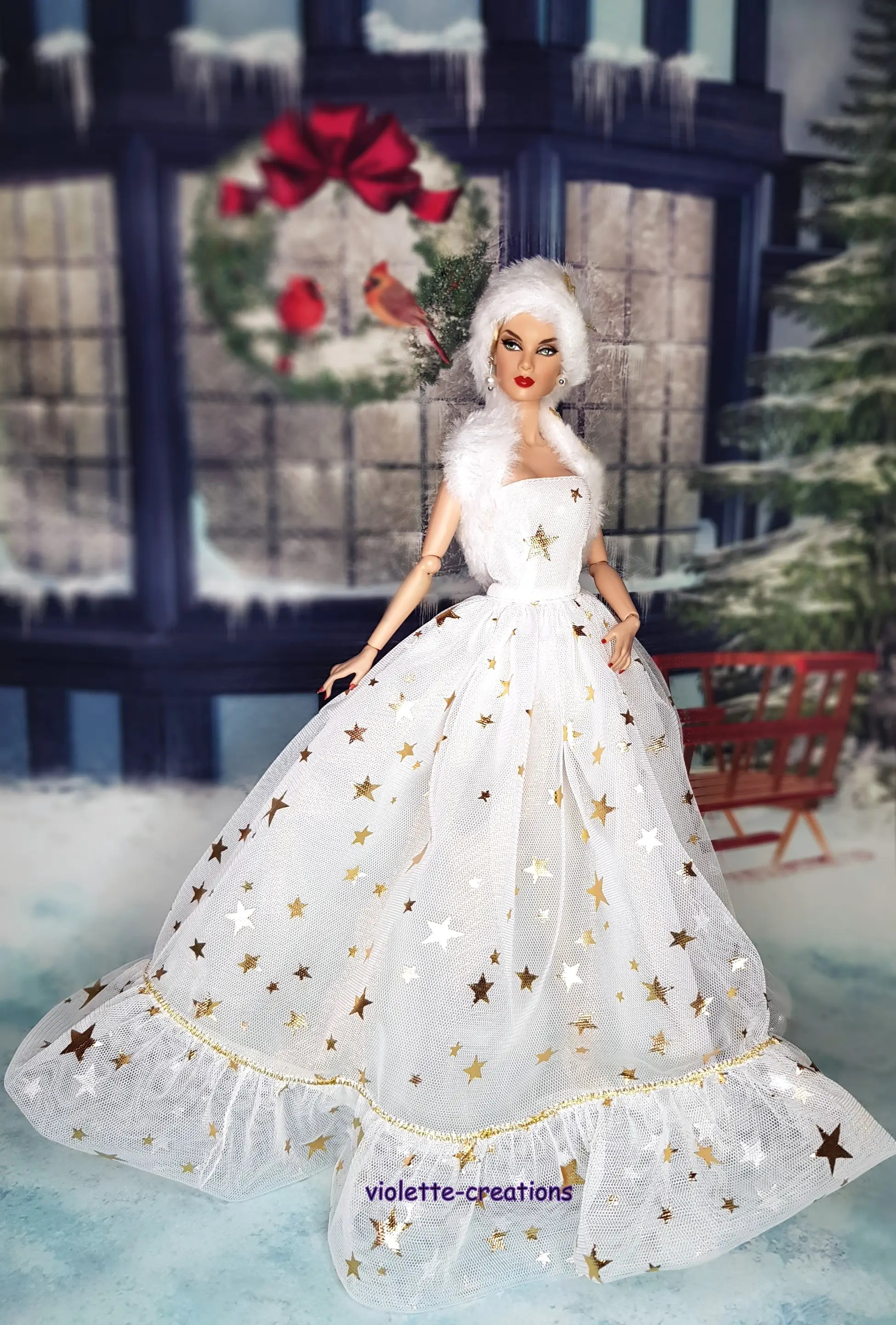 ✨ Robe Princesse Étoilée en Organza Blanc – Poupée type Barbie ✨