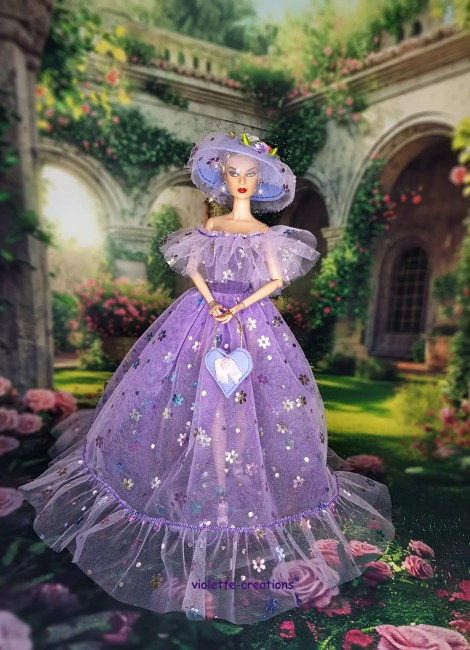 ✨ Robe Princesse Étoilée argentées en Organza Blanc – Poupée type Barbie ✨