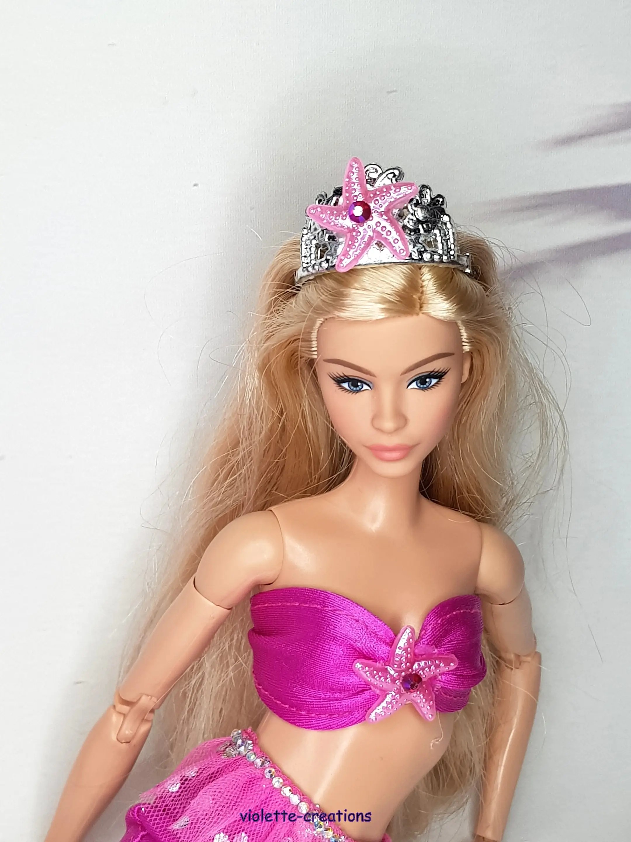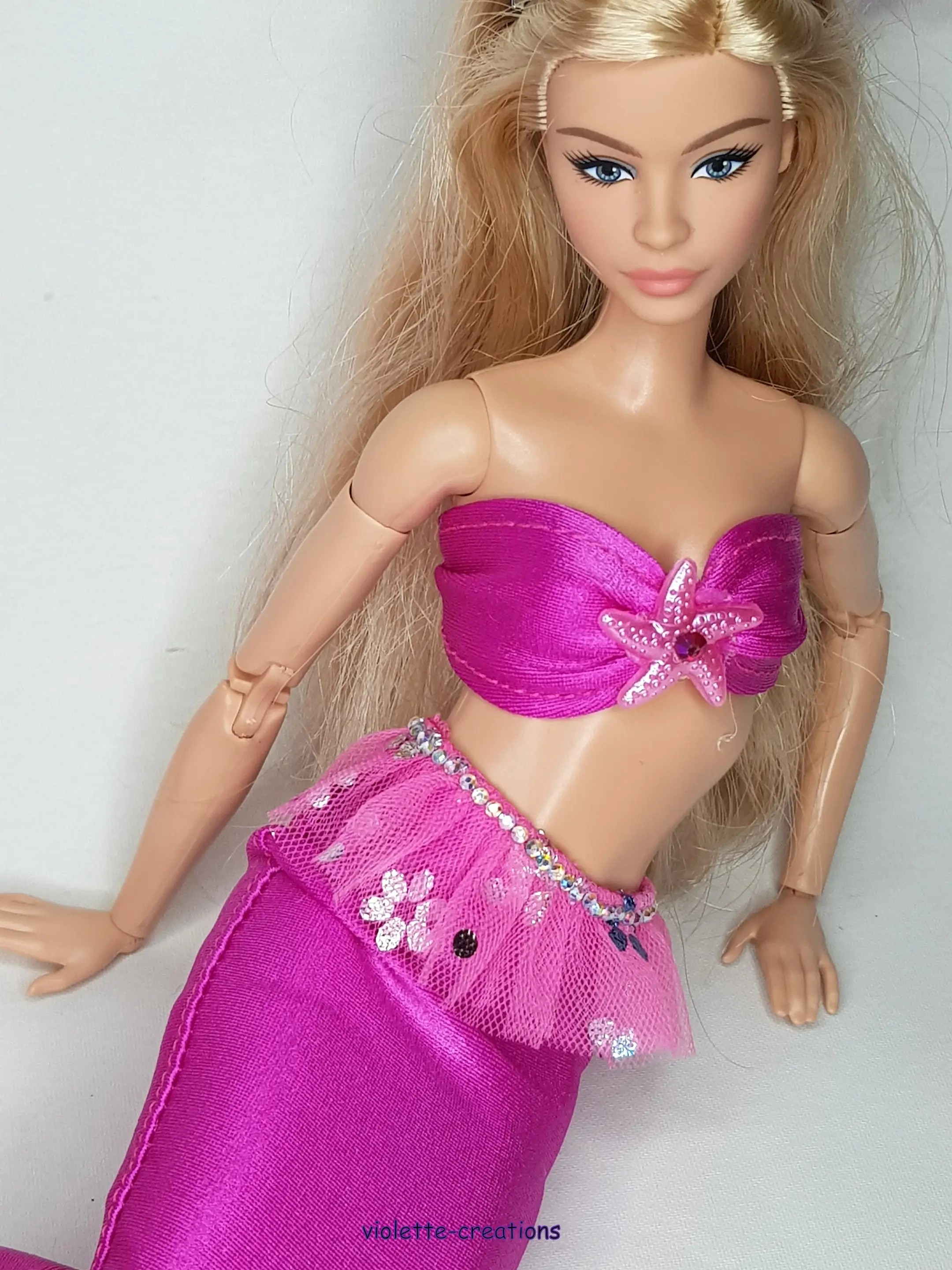 🧜♀️ Tenue Sirène rose fuchsia pour poupée type Barbie – Violette Création