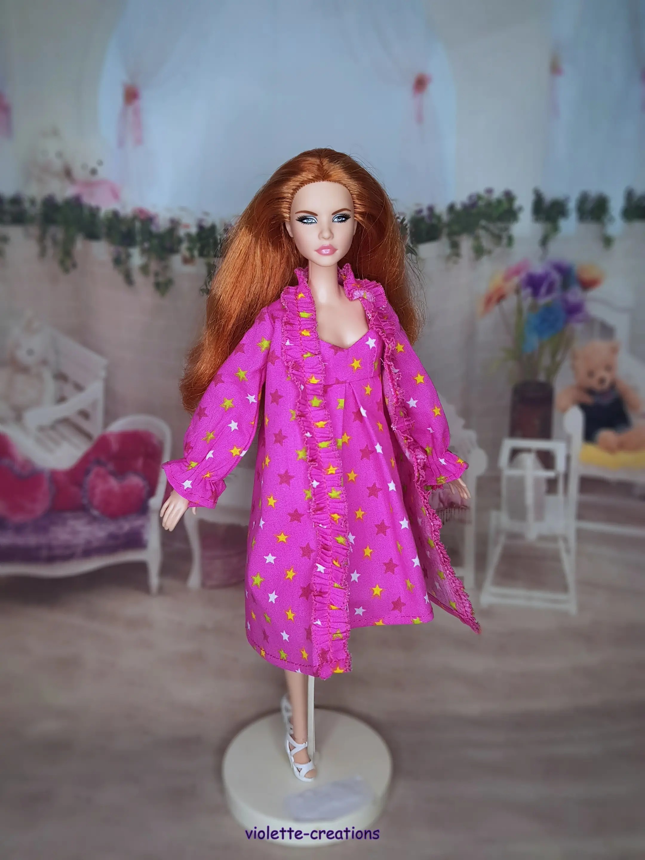 đ€ nuisette , désabillé étoilé rose en coton pour poupée type Barbie