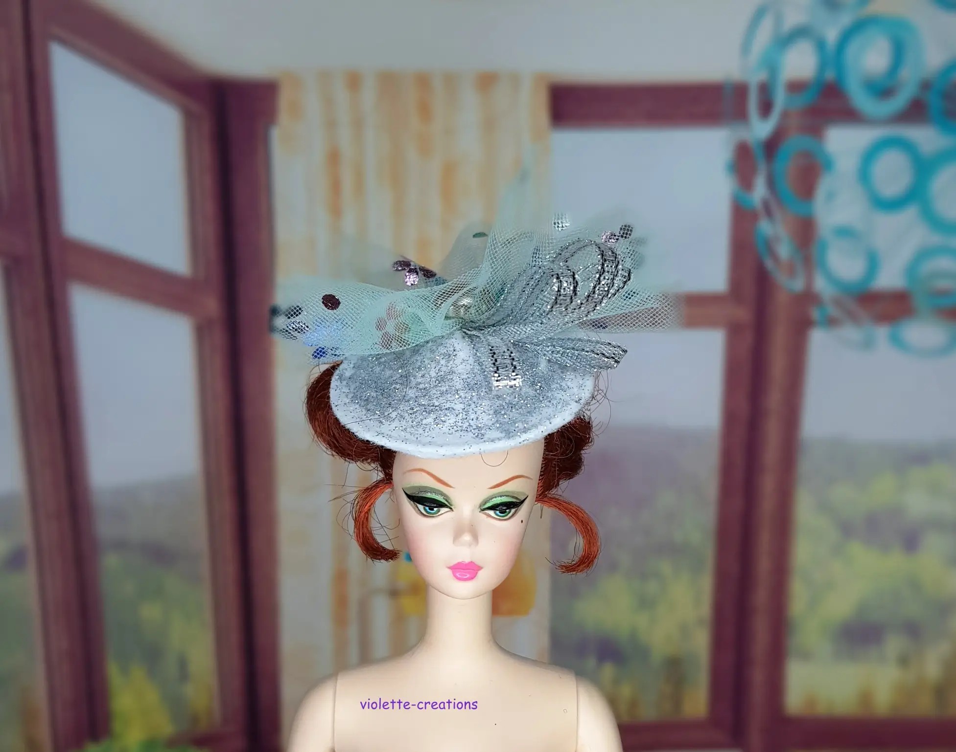 Sublimez votre poupée type Barbie avec ce magnifique chapeau façon bibi argenté au style chic et contemporain.