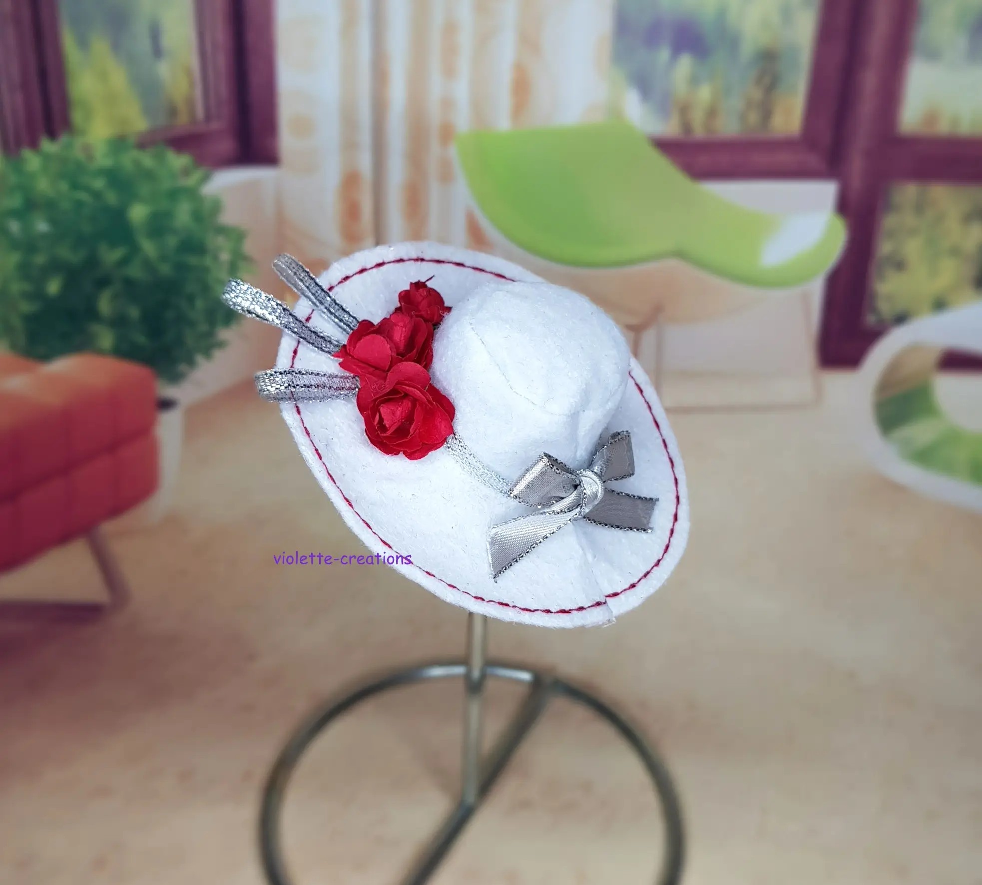 ⚓ Chapeau "Escale à Deauville" – Capeline Blanche, Roses Rouges & Argent