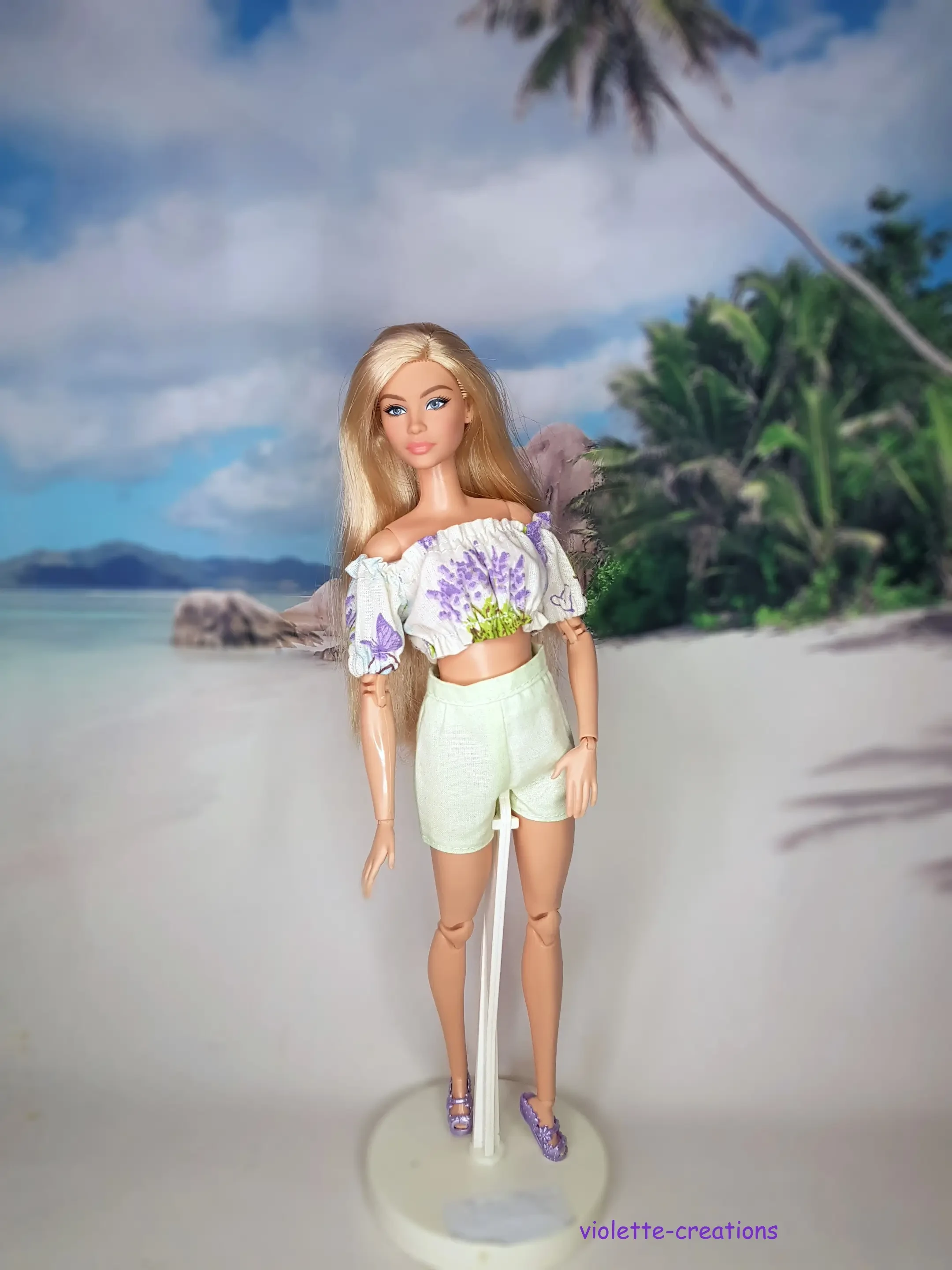 đ Tenue estivale lavande – Création artisanale pour poupée type Barbie đż