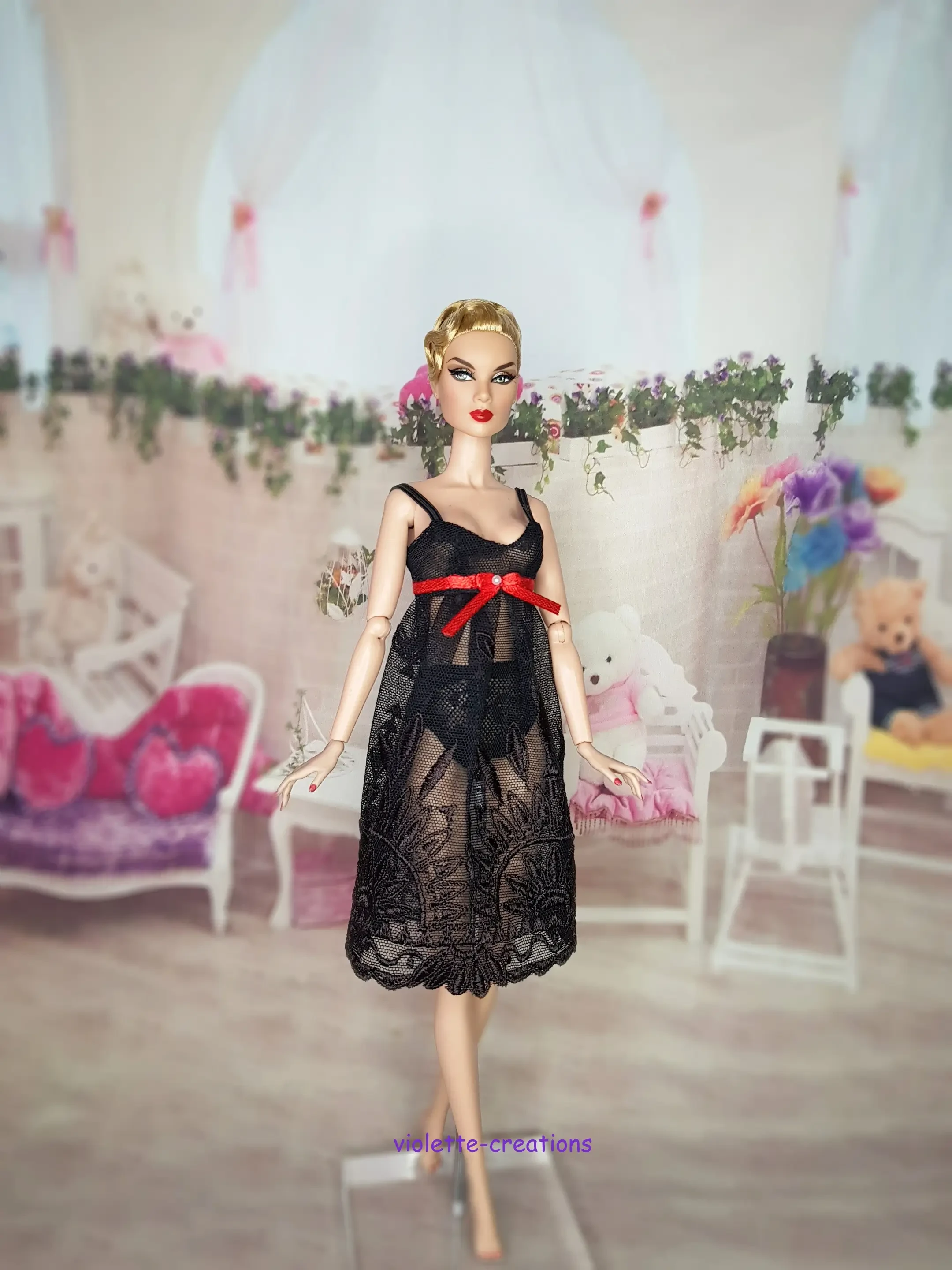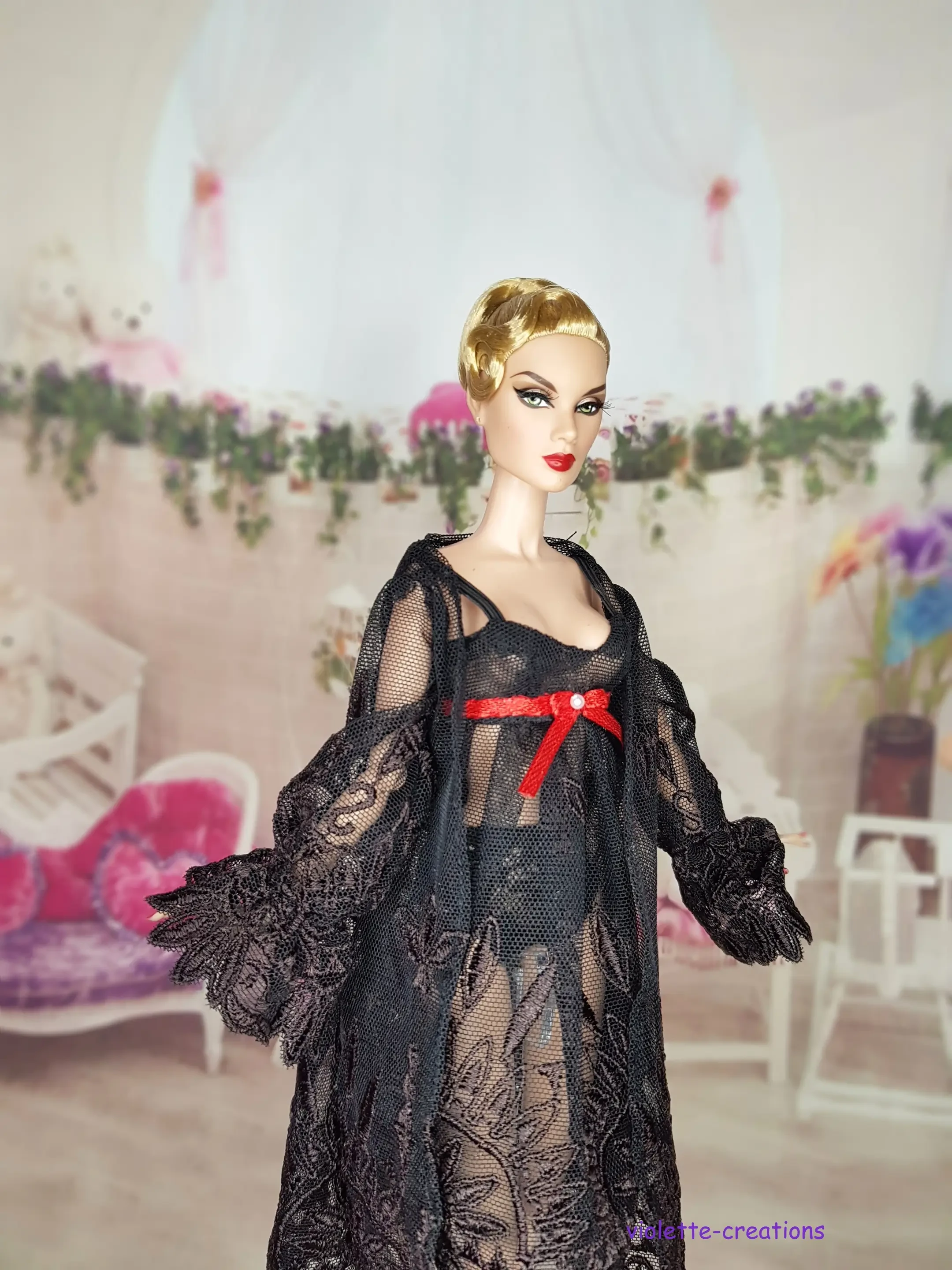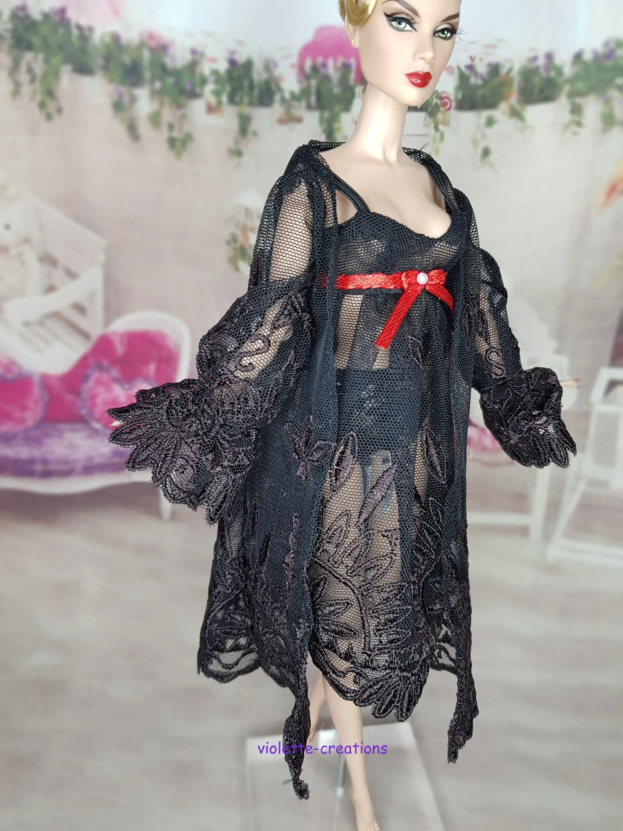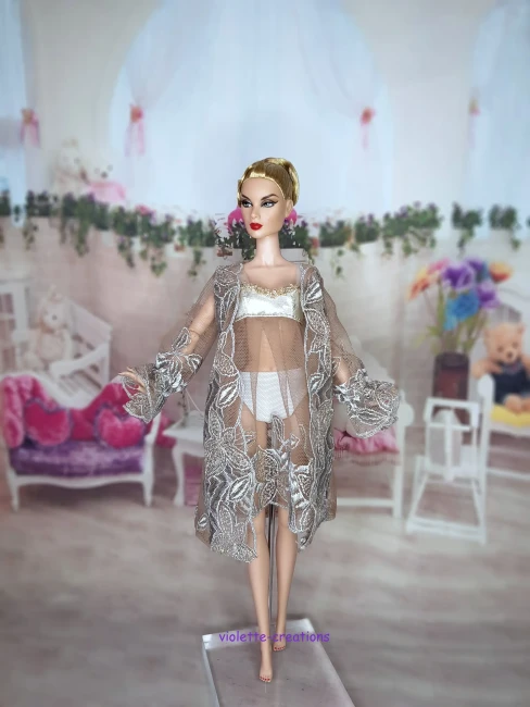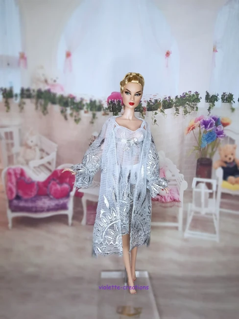 Découvrez cette nouvelle création signée Violette Creations : un ensemble de nuit sophistiqué, parfait pour les collectionneurs cherchant des pièces de haute couture miniature.