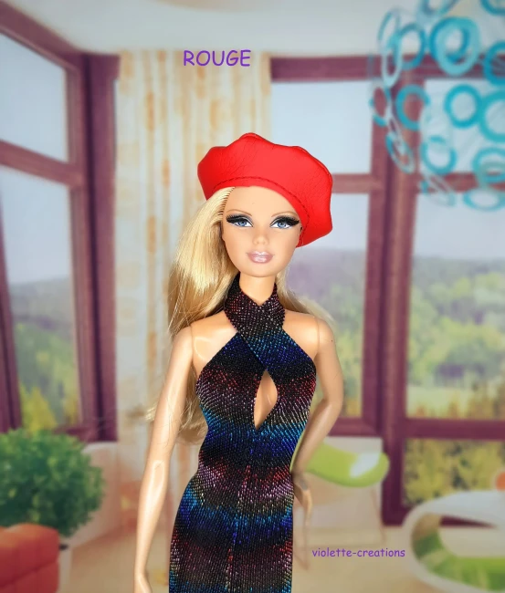 Béret en Simili Cuir pour Poupée Mannequin type barbie